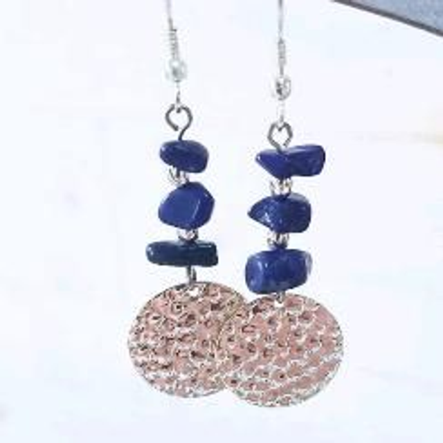 Boucles argentées et chips lapis lazuli